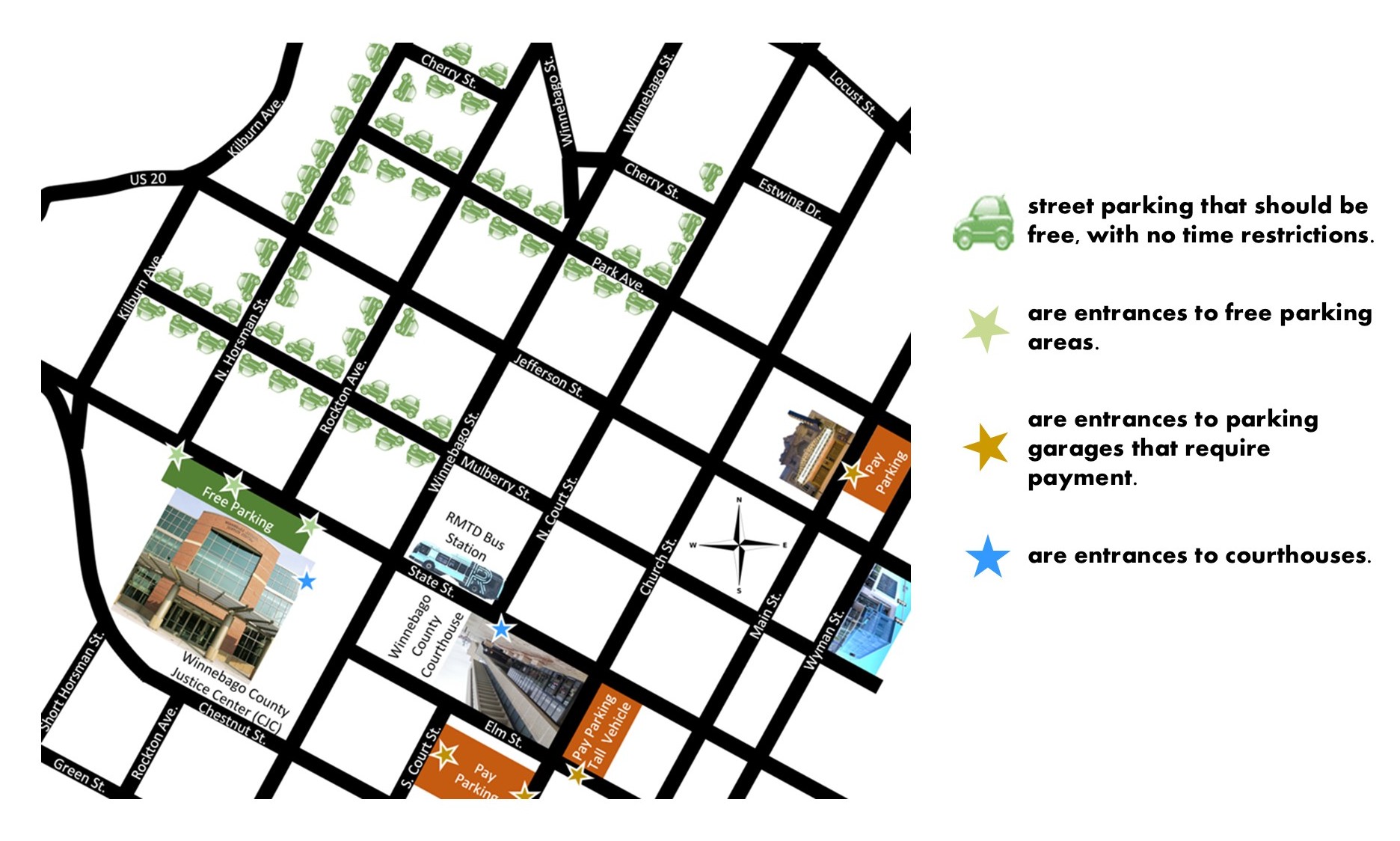 Entrance to the Criminal Justice Center located at 650 West State Street, is free. The lot has limited parking spots, so there is no guarantee.